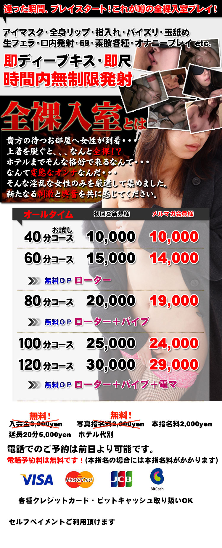 全裸コース料金表